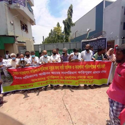 নেতৃবৃন্দ বলেন, সরাকরি তদারককারী সংস্থা দায়িত্ব পালন না করায় এ ধরনের মর্মান্তিক ঘটনা ঘটছে। তাছাড়া তাজরীন, রানা প্লাজা, টাম্পাকো কারখানায় অগ্নি সংযোগ ও ভবন ধসের ঘটনায় মালিক-সরকার প্রশাসনের কারো বিচার ও শাস্তি না হওয়ায়ই একের পর এক এ ধরনের