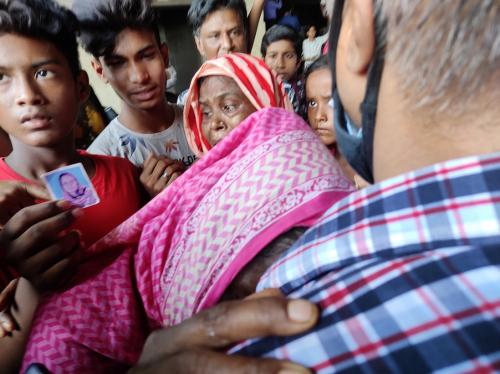 ৪র্থ তলায় একটি কালো ভষ্মিভূত স্তুপের মধ্য থেকে কয়েকটি হাড় তুলে একজন শ্রমিকের স্বজন চিৎকার করে বলে উঠেন, এটি তার মৃত মেয়ের হাড়। তার মেয়ে ঐ ফ্লোরে কাজ করতো। এ ঘটনায় নেতৃবৃন্দ বিস্ময় প্রকাশ করে বলেন,