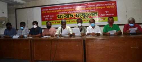 বাম গণতান্ত্রিক জোট কেন্দ্রীয় পরিচালনা পরিষদের উদ্যোগে রূপগঞ্জে অগ্নিকাণ্ডে ভস্মিভূত সেজান জুস কারখানা পরিদর্শনের অভিজ্ঞতা তুলে ধরতে আজ ১৪ জুলাই ২০২১ দুপুর ১২টায় মৈত্রী মিলনায়তনে সংবাদ সম্মেলন অনুষ্ঠিত হয়। সংবাদ সম্মেলনে লিখিত বক্তব্য পাঠ করেন বাম জোটের সমন্বয়ক ও বাসদ কেন্দ্রীয় কমিটির সদস্য কমরেড বজলুর রশীদ ফিরোজ। সংবাদ সম্মেলনে বক্তব্য রাখেন সিপিবি’র সাধারণ সম্পাদক কমরেড মোহাম্মদ শাহ আলম, বিপ্লবী ওয়ার্কার্স পার্টির সাধারণ সম্পাদক কমরেড সাইফুল হক, ইউসিএলবি’র সাধারণ সম্পাদক কমরেড মোশাররফ হোসেন নান্নু, বাসদ (মার্কসবাদী)’র কেন্দ্রীয় নেতা কমরেড মানস নন্দী, গণসংহতি আন্দোলনের সম্পাদকমণ্ডলীর সদস্য কমরেড বাচ্চু ভুইয়া, গণতান্ত্রিক বিপ্লবী পার্টির কমরেড শহীদুল ইসলাম সবুজ, সমাজতান্ত্রিক আন্দোলনের কমরেড হামিদুল হক, সিপিবির আব্দুল্লাহ কাফি রতন, বাসদের রাজেকুজ্জামান রতন, বিপ্লবী ওয়ার্কার্স পার্টির আকবর খান, সমাজতান্ত্রিক আন্দোলনের আব্দুল আলী।
