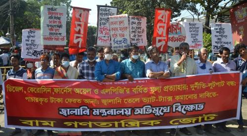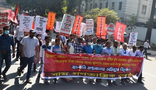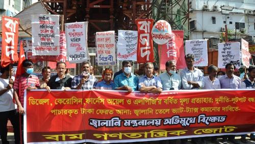জ্বালানি তেল এর মূল্য কমানো এবং বাস-লঞ্চের বর্ধিত ভাড়া প্রত্যাহার করার দাবিতে বাম গণতান্ত্রিক জোটের উদ্যোগে আজ ৮ নভেম্বর ২০২১ সকাল এগারটায় জাতীয় পল্টন মোড়ে এক বিক্ষোভ সমাবেশ অনুষ্ঠিত হয়। পল্টন মোড়ে সংক্ষিপ্ত সমাবেশ শেষে জ্বালানি মন্ত্রণালয়ের অভিমুখে বিক্ষোভ মিছিল মুক্তাঙ্গন, নূরহোসেন স্কোয়ার হয়ে সচিবালয়ের পূর্ব গেইটে পুলিশি বাঁধার সম্মুখীন হয়। বিক্ষোভ মিছিল পুলিশী বাধা উপেক্ষা করে জ্বালানি মন্ত্রণালয় অভিমুখে যেতে চাইলে সেখনে বাম জোটের নেতা-কর্মীদের সাথে পুলিশের ধাক্কাধাক্কি এবং রাজপথে অবস্থান গ্রহণ করে সমাবেশ অনুষ্ঠিত হয়।
