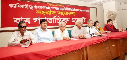 গণতান্ত্রিক অধিকার হরণ করতে - বিএনপি কেন্দ্রীয় কার্যালয়ে হামলা, গুলি, ১ জনকে হত্যা, গায়েবী মামলা, মির্জা ফখরুলসহ অর্ধসহস্রাধিক নেতাকর্মীর গ্রেপ্তার, আওয়ামী সরকারের চরম ফ্যাবিসাদী আক্রমণ এবং মূল্য বৃদ্ধির সিন্ডিকেট নিয়ন্ত্রণ না করে পৃষ্ঠপোষকতার প্রতিবাদে বাম গণতান্ত্রিক জোটের সংবাদ সম্মেলন