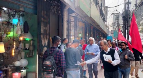 পুরানা পল্টনে সিপিবি কার্যালয়ের সামনে থেকে মতিঝিল এলাকায় প্রচারপত্র
