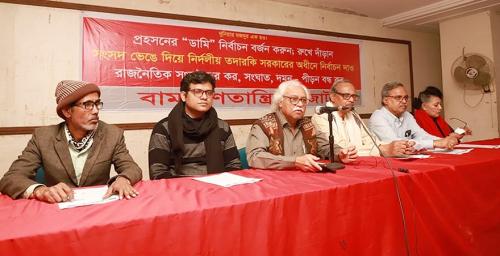 আজ ৪ জানুয়ারি ২০২৪, বৃহস্পতিবার, সকাল সাড়ে ১১টায় রাজধানীর পুরানা পল্টনস্থ মুক্তিভবনের মৈত্রী মিলনায়তন অনুষ্ঠিত বাম গণতান্ত্রিক জোটের সংবাদ সম্মেলনে বলা হয়েছে, সরকার রাজনৈতিক ঐক্য প্রতিষ্ঠা করে সকলের অংশগ্রহণে নির্বাচনের পথে না হেঁটে একতরফা নির্বাচনের পথে হাঁটছেন। এই নির্বাচন ২০১৪ ও ২০১৮ এর ধারায় নতুন ধরনের প্রহসনের নির্বাচন অনুষ্ঠিত হতে যাচ্ছে।