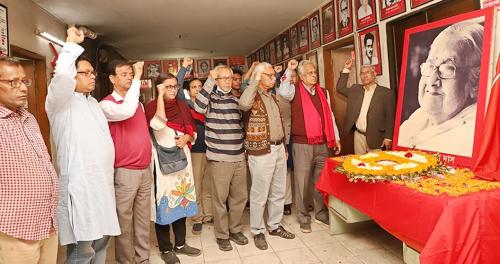 পুষ্পমাল্য অর্পণের সময় উপস্থিত ছিলেন বাংলাদেশের কমিউনিস্ট পার্টি (সিপিবি)’র সভাপতি মোহাম্মদ শাহ আলম, সাধারণ সম্পাদক রুহিন হোসেন প্রিন্স, কোষাধ্যক্ষ ডা. ফজলুর রহমান, সদস্য আবদুল্লাহ ক্বাফী রতন, অনিরুদ্ধ দাশ অঞ্জন, জলি তালুকদার, কেন্দ্রীয় কমিটির সংগঠক জাহিদ হোসেন খান প্রমুখ।