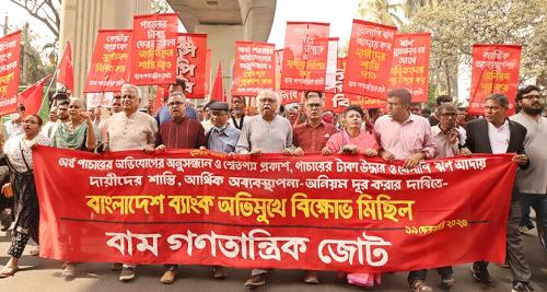 এরপর বাম গণতান্ত্রিক জোটের বিক্ষোভ মিছিল তোপখানা-পল্টন-মতিঝিল হয়ে বাংলাদেশে ব্যাংকের গেটের সামনে যায়।