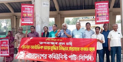 রেলের ভাড়া বৃদ্ধির প্রতিবাদে কমলাপুর রেল স্টেশন প্রাঙ্গণে বাংলাদেশের কমিউনিস্ট পার্টি (সিপিবি) আয়োজিত বিক্ষোভ সমাবেশে নেতৃবৃন্দ বলেছেন, নিত্যপণ্যের মূল্য বৃদ্ধিতে সাধারণ মানুষের জীবন অতিষ্ঠ। সাধারণ মানুষের প্রকৃত আয় কমে গেছে। এরপর গণপরিবহন রেলের টিকিটের মূল্য বৃদ্ধি সাধারণ মানুষের জীবনকে আরও অতিষ্ঠ করে তুলবে। পণ্যের পরিবহন ব্যয় বাড়বে, যা সাধারণ মানুষের উপর বর্তাবে।