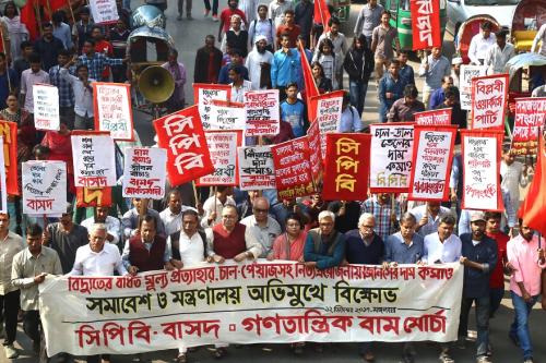বিদ্যুতের বর্ধিত মূল্য প্রত্যাহার ও চাল, পেঁয়াজ, মরিচসহ নিত্যপ্রয়োজনীয় পণ্যের দাম কমানোর দাবিতে সিপিবি-বাসদ ও গণতান্ত্রিক বাম মোর্চা আজ সচিবালয়ের সামনে বিক্ষোভ সমাবেশ করেছে। এছাড়া দেশের প্রতিটি জেলায় জেলা প্রশাসকের কার্যালয়ের সামনে অবস্থান ও বিক্ষোভ প্রদর্শন শেষে জেলা প্রশাসকের মাধ্যমে প্রধানমন্ত্রী বরাবর স্মারকলিপি পেশ করা হয়।