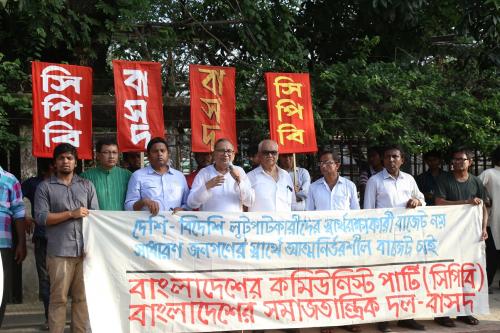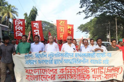 প্রস্তাবিত বাজেট প্রত্যাহার করে আত্মনির্ভরশীল ধারায় প্রগতিশীল বাজেট প্রণয়নের দাবিতে বাংলাদেশের কমিউনিস্ট পার্টি (সিপিবি) ও বাংলাদেশের সমাজতান্ত্রিক দল বাসদ’র উদ্যোগে প্রতিবাদ-সমাবেশে সিপিবি ও বাসদ নেতৃবৃন্দ বলেছেন, প্রস্তাবিত বাজেট গণ-প্রতারণামূলক। এ বাজের আয়-ধন বৈষম্য দ্রুত গতিতে বাড়াবে। প্রস্তাবিত বাজেট প্রত্যাহার করে গণমুখী বাজেট প্রণয়ন করতে হবে।