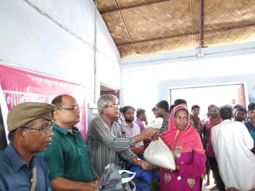 প্রমুখ। বন্যা দুর্গত কয়েকশ পরিবারের মধ্যে চাল, আলু, পানীয় জলসহ নানা সামগ্রী বিতরণ করা হয়।