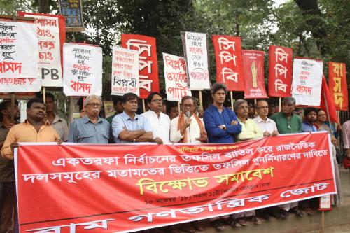 জাতীয় প্রেসক্লাবের সামনে বাম গণতান্ত্রিক জোটের বিক্ষোভ সমাবেশ # নির্বাচনের পরিবেশ তৈরি করেই পুনঃতফসিল ঘোষণা করতে হবে