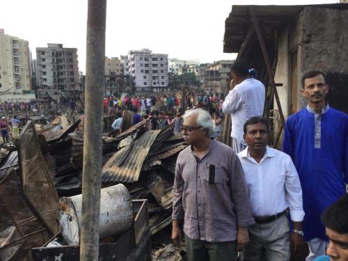 অগ্নিকাণ্ডে ভস্মীভূত বস্তি পরিদর্শনকালে উপস্থিত ছিলেন, বাম গণতান্ত্রিক জোটের শীর্ষ নেতা আব্দুস সাত্তার, রুহিন হোসেন প্রিন্স, খালেকুজ্জামান লিপন, সাজেদুল হক রুবেল, সীমা দত্ত, ডা. মুজিবুল হক ও মামুন কবির প্রমুখ।
