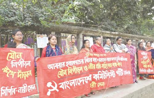 আজ ১৪ অক্টোবর জাতীয় প্রেসক্লাবের সামনে অনুষ্ঠিত সিপিবি নারী সেল-এর প্রতিবাদ সমাবেশে নেতৃবৃন্দ এসব কথা বলেন। অনুষ্ঠিত প্রতিবাদ সমাবেশে সিপিবি সভাপতিমণ্ডলীর সদস্য ও নারী সেলের আহ্বায়ক লক্ষ্মী চক্রবর্তীর সভাপতিত্বে বক্তব্য রাখেন সিপিবি’র সম্পাদক জলি তালুকদার, সিপিবি কেন্দ্রীয় কমিটির সদস্য অ্যাড. মাকসুদা আক্তার লাইলী, লুনা নূর, নারী সেলের সদস্য রঞ্জনা দেবী, রোকেয়া বেগম, অ্যাড. দিপালী চৌধুরী প্রমুখ।