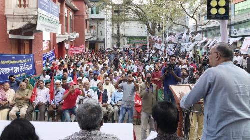 আজ ১০ মার্চ মঙ্গলবার, বিকালে বরিশাল অশ্বিনী কুমার হল চত্বরে কমরেড মোতাহার মোল্লার সভাপতিত্বে অনুষ্ঠিত বরিশাল বিভাগীয় সমাবেশে ‘ভাত ও ভোটের অধিকার প্রতিষ্ঠার জন্য শুধু গদির বদল নয়, বামপন্থীদের নেতৃত্বে ব্যাবস্থা বদলের সংগ্রামের আহবানে দেশরক্ষা অভিযাত্রা সমাবেশে কমরেড মুজাহিদুল ইসলাম সেলিম একথা বলেন।’ তিনি আরো বলেন, সেরা অর্থমন্ত্রী দাবীদার অর্থমন্ত্রী নিজেই বলেছেন ‘ব্যাংকের অর্থ লুটপাট