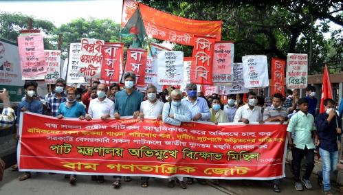 বন্ধ সকল রাষ্ট্রীয় পাটকল সেপ্টেম্বরের মধ্যে চালু ও আধুনিকায়ন করার দাবিতে আজ ২৭ সেপ্টেম্বর ২০২০ সকাল ১১টায় বাম গণতান্ত্রিক জোটের উদ্যোগে দেশব্যাপী বিক্ষোভ অনুষ্ঠিত হয়।