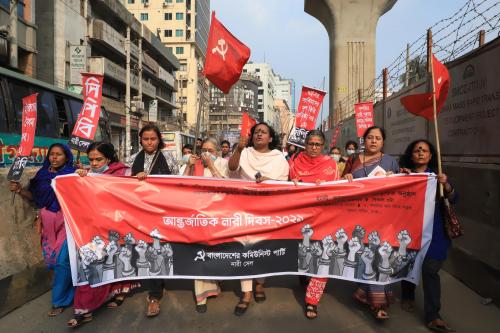 বক্তারা আরও বলেন, বিদ্যমান আইনী কাঠামোতে নারীর সমঅধিকার চরমভাবে অবহেলিত। রাষ্ট্রে বিচারহীনতা ও জবাবদিহীতার অভাব, সর্বোপরি গণতন্ত্রহীনতার কারণে নারী-নির্যাতন-শোষণ ক্রমাগত: বেড়েই চলে। পুঁজিবাদ নারীদিবসের তাৎপর্যকে ভিন্ন ধারায় একটি সাধারণ আনন্দ উদযাপনে করেছে। এ ব্যাপারে আমাদের সজাগ থাকতে হবে। কাজেই নারীমুক্তির লড়াই এবং সমাজ টরিবর্তনের লড়াই সমানভাবেই অগ্রসর করতে হবে।