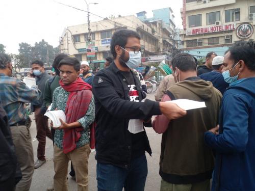 ভোট ডাকাতির ৩ বছর পূর্তি উপলক্ষে ৩০ ডিসেম্বর ২০২১ কালো দিবস পালনের আহ্বান জানিয়ে বাম গণতান্ত্রিক জোটের উদ্যোগে আজ ২৭ ডিসেম্বর ২০২১ পল্টন মোড় থেকে দৈনিক বাংলা, বায়তুল মোকাররম, জিপিও, মুক্তাঙ্গন এলাকায় প্রচারপত্র বিলি ও গণসংযোগ করা হয়।