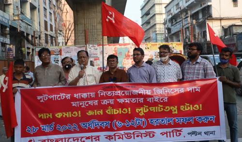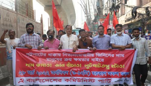 সিপিবি সভাপতি বাজার নিয়ন্ত্রণের দাবিতে শাসকদের বিরুদ্ধে আগামী ২৮ মার্চ দেশের আপামর জনসাধারণকে সর্বাত্মক হরতাল পালনের আহ্বান জানান।