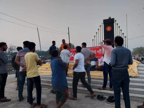 বাংলাদেশের কমিউনিস্ট পার্টি (সিপিবি)’র সভাপতি কমরেড মোহাম্মদ শাহ আলম ও সাধারণ সম্পাদক কমরেড রুহিন হোসেন প্রিন্স এক বিবৃতিতে আজ খুলনায় সিপিবি অফিস পুলিস কর্তৃক অবরুদ্ধ করে কর্মসূচি পালনে বাধা, শ্রমিকলীগ, যুবলীগ এবং আওয়ামীলীগের নেতাকর্মীদের নারায়ণঞ্জের রূপগঞ্জে সিপিবির পথসভার ব্যানার,