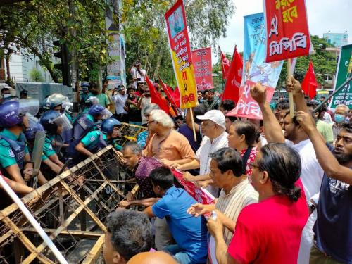আজ ১২ মে ২০২২ বাংলাদেশের কমিউনিস্ট পার্টি (সিপিবি) সকাল ১১টায় পল্টন মোড়ে সমাবেশ করে বাণিজ্য মন্ত্রণালয় অভিমুখে ভোজ্যতেলের মূল্য বৃদ্ধি ও লুটেরা ব্যবসায়ীদের রক্ষক ব্যর্থ বাণিজ্যমন্ত্রীর অপসারণ ও বিকল্প বাজার ব্যবস্থা গড়ে তোলা, টিসিবি’র দোকান, গাড়ি বৃদ্ধি ও বিকল্প বাজার ব্যবস্থার মাধ্যমে জনদুর্ভোগ নিরসণের দাবিতে বিক্ষোভ করে। বিক্ষোভ মিছিল শুরু হয়ে বাণিজ্য মন্ত্রণালয় অভিমুখে যাত্রার সময় গুলিস্তান নূর হোসেন চত্বরে পুলিশি বাধার মুখে পড়ে। মিছিলটি পুলিশি বাধা উপেক্ষা করে বিক্ষোভ অব্যাহত রাখে এবং পুলিশি বাধার সামনেই বিক্ষোভ সমাবেশ অনুষ্ঠিত করে।