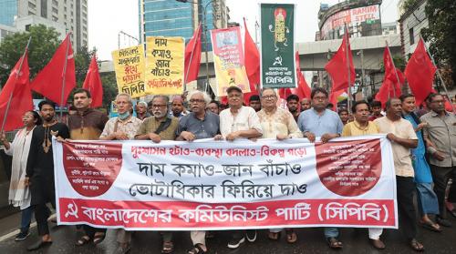 বাংলাদেশের কমিউনিস্ট পার্টি সিপিবি’র নেতৃবৃন্দ বলেছেন, সরকার দ্রব্যমূল্য নিয়ন্ত্রণে ব্যর্থ। আবার বিদ্যুৎ, গ্যাস, পানির দাম বাড়ানোর চেষ্টা করছে। সফল হয়েছে ব্যবসায়ী, মধ্যস্বত্বভোগী আর মজুতদারদের স্বার্থ রক্ষায়। এই সরকারের আর গদিতে থাকার অধিকার নেই। নেতৃবৃন্দ সংখ্যানুপাতিক পদ্ধতি প্রবর্তনসহ নির্বাচন ব্যবস্থার সংস্কার, নির্বাচনকে টাকা, পেশিশক্তি, প্রশাসনিক কারসাজি মুক্ত করা এবং নির্দলীয় তদারকি সরকারের অধীনে জাতীয় সংসদ নির্বাচনের দাবি জানান।