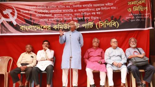 বাংলাদেশের কমিউনিস্ট পার্টি (সিপিবি) আয়োজিত সমাবেশে নেতৃবৃন্দ বলেছেন, গণদাবি ও জনমত উপেক্ষা করে সরকার আবারো একতরফা নির্বাচনের দিকে এগুচ্ছে। একতরফা তকমা ঘোচাতে বিভিন্ন দল ও ব্যক্তিকে নির্বাচনে অংশ নিতে নানা অপকৌশল ব্যবহার করা হচ্ছে। তবে এসব কাজকর্ম যে এক কেন্দ্র থেকে পরিচালিত হচ্ছে- তা গোপন থাকছে না। এ পদ্ধতিতে অনুষ্ঠিত নির্বাচন দেশে চলমান রাজনৈতিক সংকট দূর করবে না। বরং দেশ ও দেশের মানুষ নতুন সংকটে পড়বে। সরকারের স্বৈরাচারী, কর্তৃত্ববাদী প্রবণতা বাড়বে। অর্থনৈতিক সংকট তীব্র হবে। এই সুযোগে সাম্রাজ্যবাদী, আধিপত্যবাদী শক্তি দেশের ওপর আরো হস্তক্ষেপ বাড়াবে। অন্ধকারের অপশক্তি অগণতান্ত্রিক অবস্থা তৈরীর প্রচেষ্টা নেবে- যা মুক্তিযুদ্ধের মধ্য দিয়ে অর্জিত বাংলাদেশে কাম্য নয়।
