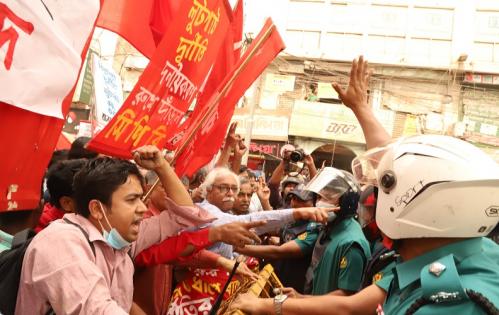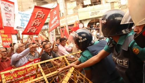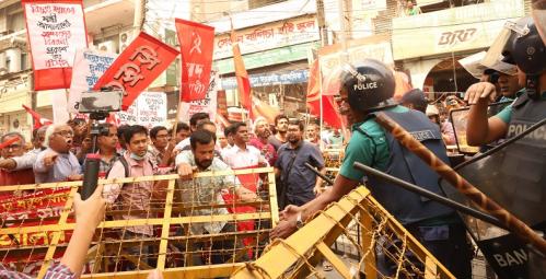 আজ বেলা ১২টায় জাতীয় প্রেসক্লাবের সামনে বাম জোটের সমন্বয়ক ও সিপিবির সাধারণ সম্পাদক রুহিন হোসেন প্রিন্সের সংক্ষিপ্ত বক্তব্যের পর জ্বালানি মন্ত্রণালয় অভিমুখে বাম গণতান্ত্রিক জোটের নেতাকর্মীরা মিছিল নিয়ে যেতে চাইলে পল্টন মোড়ে পুলিশি ব্যারিকেডের মুখে পড়ে। এ সময় পুলিশ বাম জোটের কেন্দ্রীয় নেতৃবৃন্দসহ নেতাকর্মীদের সাথে উত্তেজিত ও খারাপ আচরণ করে।