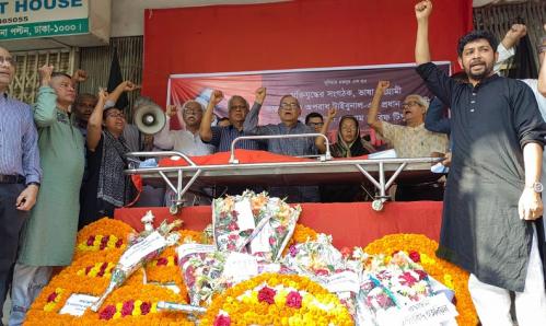এ সময় বাংলাদেশের কমিউনিস্ট পার্টির সাবেক সভাপতি মুজাহিদুল ইসলাম সেলিম, সাধারণ সম্পাদক রুহিন হোসেন প্রিন্সসহ বিভিন্ন সংগঠনের নেতৃবৃন্দ এবং পরিবারের সদস্যরা উপস্থিত ছিলেন।