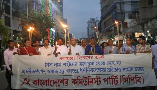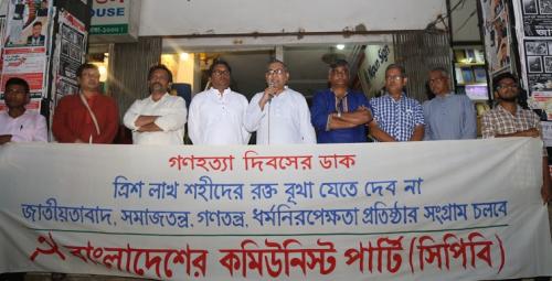 আলোর মিছিল পূর্ব সংক্ষিপ্ত সমাবেশে সিপিবির সভাপতি কমরেড মুজাহিদুল ইসলাম সেলিম বলেন, ১৯৭১ সালের ২৫ মার্চ রাতে বাংলাদেশের মানুষের মুক্তিসংগ্রামকে ধ্বংস করতে পাকিস্তানি বর্বর সেনাবাহিনী অর্তকিত হামলা করে ঢাকায় ছাত্র-পুলিশ-বস্তিবাসীসহ অসংখ্য নিরীহ ঘুমন্ত মানুষকে হত্যা করেছিল। তারা মুক্তিযুদ্ধের ৯ মাসে ত্রিশ লাখ মানুষকে হত্যা করেছে, কিন্তু বিজয় ঠেকিয়ে রাখতে পারেনি। আজ ৩০ লাখ মানুষের রক্তে পাওয়া বাংলাদেশ শাসক গোষ্ঠীর লুটপাট আর ভ্রান্তনীতির কারণে জন্মকালীন