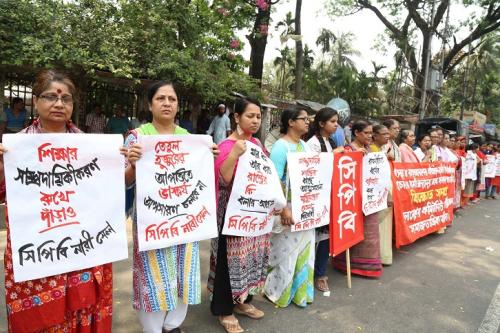 বাংলাদেশের কমিউনিস্ট পার্টি কেন্দ্রীয় নারী সেলের আহ্বায়ক ও সিপিবি কেন্দ্রীয় কমিটির প্রেসিডিয়াম সদস্য লক্ষ্মী চক্রবর্তীর সভাপতিত্বে এবং সমাজতান্ত্রিক মহিলা ফোরামের সাধারণ সম্পাদক প্রকৌশলী শম্পা বসুর পরিচালনায় বিক্ষোভ সমাবেশে বক্তব্য রাখেন বাংলাদেশের কমিউনিস্ট পার্টির কেন্দ্রীয় কমিটির সদস্য শিক্ষাবিদ এ এন রাশেদা, বাংলাদেশের কমিউনিস্ট পার্টি কেন্দ্রীয় নারী সেলের নেত্রী অ্যাড. মাকসুদা আক্তার লাইলী, লুনা নূর, তাহমিনা ইয়াসমিন নীলা, শাহানারা বেগম, এবং