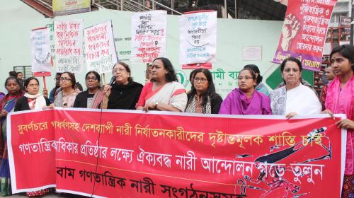 আজ ৯ জানুয়ারি বিকেল ৪টায় জাতীয় প্রেসক্লাবের সামনে অনুষ্ঠিত বাম গণতান্ত্রিক নারী সংগঠনসমূহের প্রতিবাদ সমাবেশে বক্তারা একথা বলেন।