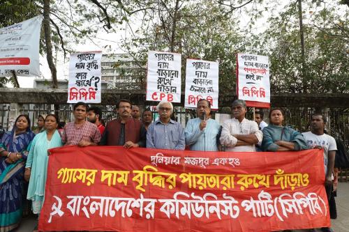 বাংলাদেশের কমিউনিস্ট পার্টি (সিপিবি) আয়োজিত বিক্ষোভ সমাবেশে গ্যাসের দাম বাড়াতে মন্ত্রীর ঘোষণাকে অযৌক্তিক ও লুটেরা ব্যবসায়ী, কমিশন ভোগীদের স্বার্থ রক্ষার উদ্যোগ হিসেবে আখ্যাহিত করে এই প্রক্রিয়া বন্ধের দাবি জানানো হয়েছে।