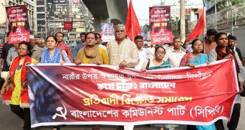 সারাদেশে অব্যাহত নারী নির্যাতন, খুন ও ধর্ষণের ঘটনার বিরুদ্ধে প্রতিবাদ জানিয়ে বিক্ষোভ মিছিল ও প্রতিবাদ সমাবেশ করেছে বাংলাদেশের কমিউনিস্ট পার্টি (সিপিবি)।
