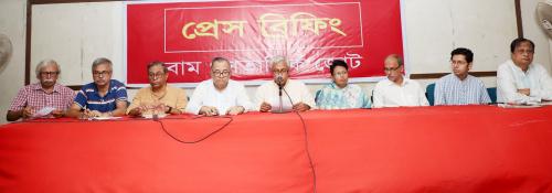 ভারতের সাথে সম্পাদিত জাতীয় স্বার্থবিরোধী অসম চুক্তিসমূহ সম্পর্কে বক্তব্য তুলে ধরতে বাম গণতান্ত্রিক জোটের কেন্দ্রীয় পরিচালনা পরিষদ আজ ৯ অক্টোবর পুরানা পল্টনস্থ মৈত্রী মিলনায়তনে সংবাদ সম্মেলন করেছে। সংবাদ সম্মেলনে লিখিত বক্তব্য পাঠ করেন ইউসিএলবি’র সম্পাদকমণ্ডলীর সদস্য অধ্যাপক আব্দুস সাত্তার। উপস্থিত ছিলেন সিপিবি’র সভাপতি মুজাহিদুল ইসলাম সেলিম, সাধারণ সম্পাদক মোহাম্মদ শাহ আলম, বিপ্লবী ওয়ার্কার্স পার্টির সাধারণ সম্পাদক সাইফুল হক, বাসদ কেন্দ্রীয় কমিটির সদস্য বজলুর রশীদ ফিরোজ, বাসদ (মার্কসবাদী)’র কেন্দ্রীয় কমিটির সদস্য মানস নন্দী, গণতান্ত্রিক বিপ্লবী পার্টির সাধারণ সম্পাদক মোশরেফা মিশু, গণসংহতি আন্দোলনের সম্পাদকমণ্ডলীর সদস্য মনিরউদ্দিন পাপ্পু, সমাজতান্ত্রিক আন্দোলনের হামিদুল হক।